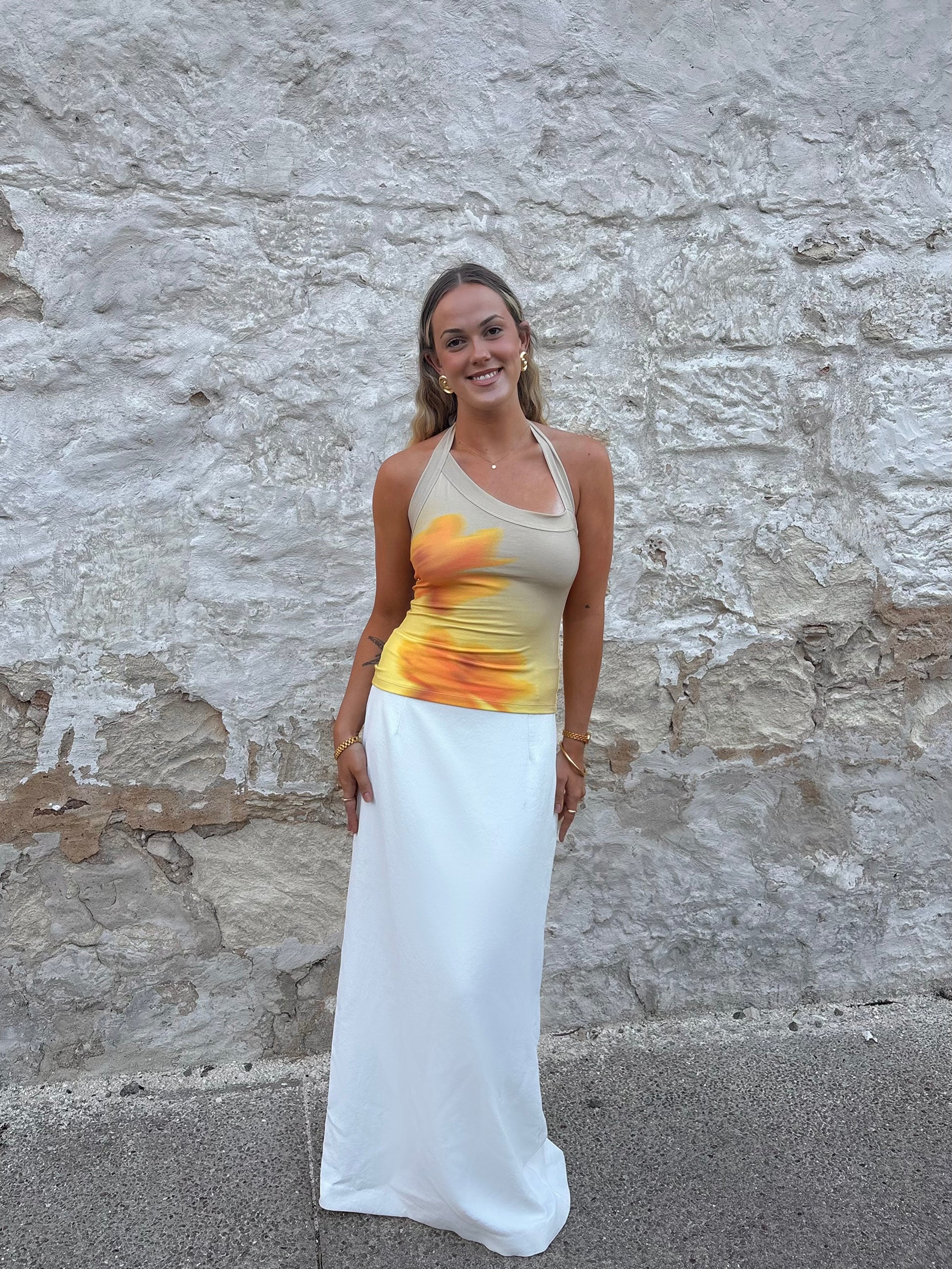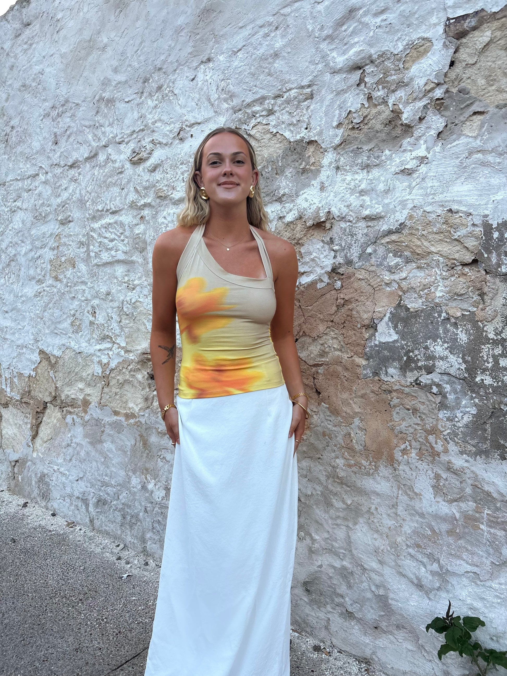 -Features tie up halter neck straps